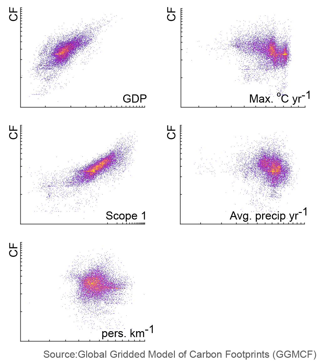 The above were combined to distribute the carbon footprint of each nation into a spatially detailed gridded model.