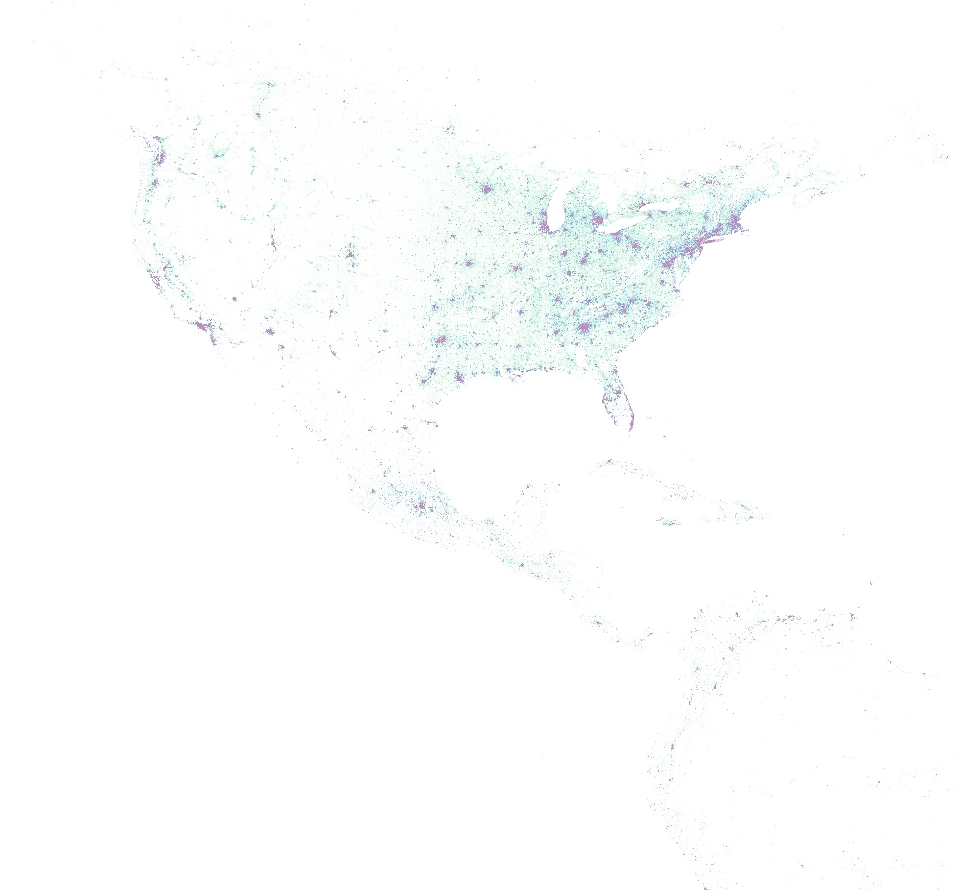Artistic image showing the total carbon footprint in the Eastern US and Canada. [tweetable JPG] [powerpoint-friendly JPG]
